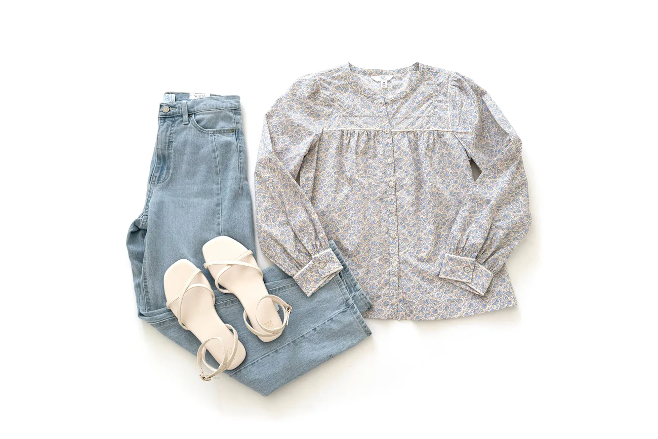 An easy early spring outfit idea 🌿 Lightweight floral button-up, light wash denim, and neutral accessories for a soft, elevated everyday look. Get a closer look at them in my Reel and shop the whole look below.