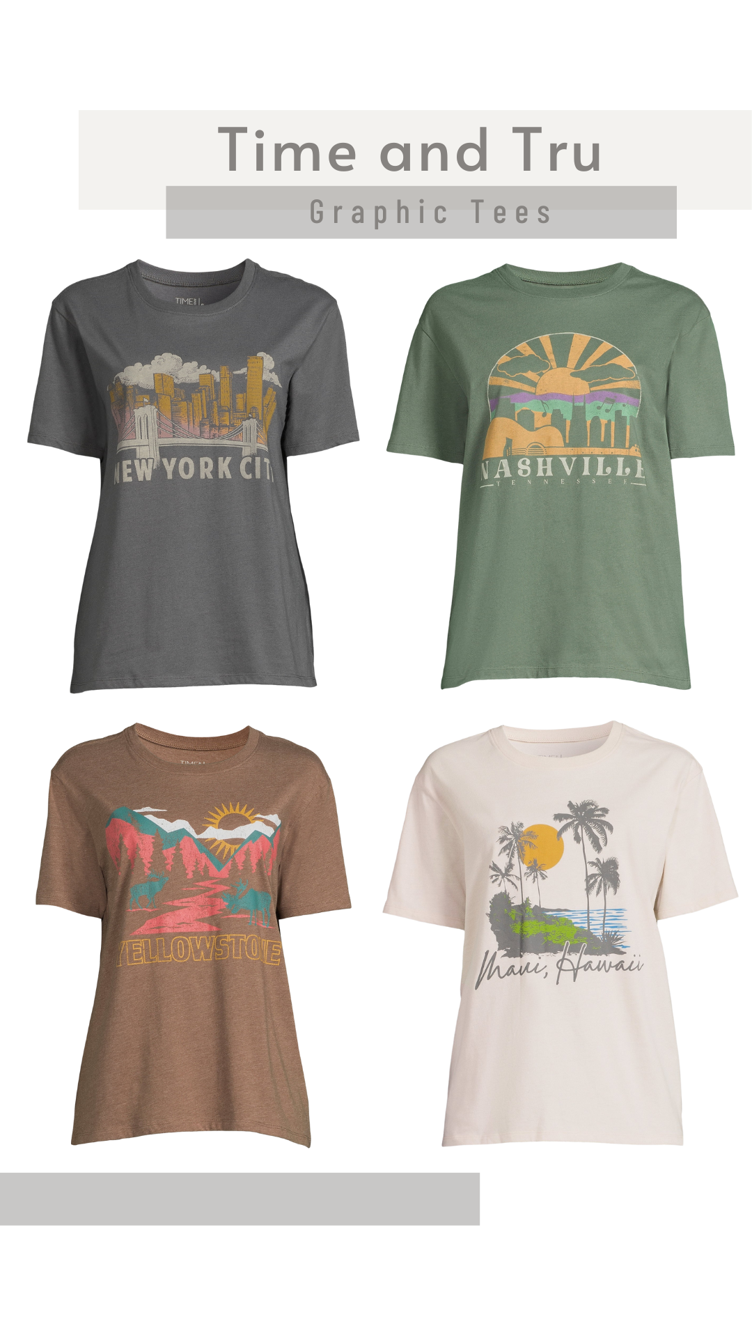 Time And Tru Destination Graphic Tees with Short Sleeves