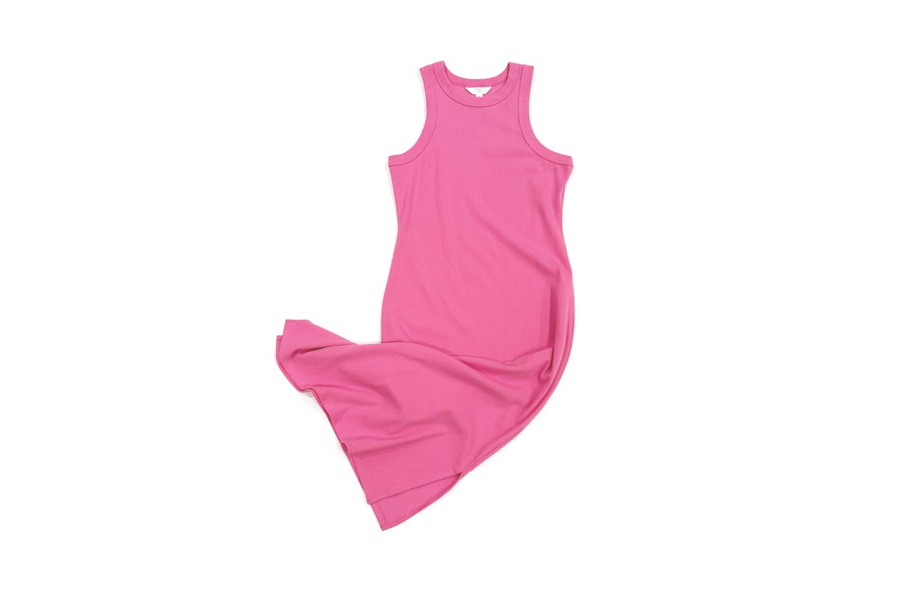 True to size and I'm wearing an XS in my try on. As easy as it gets, this sleeveless dress pops on effortlessly so you can start your day in style. Featuring a just-right fit, high crew neckline and side slits, this dress is a nod to classic warm-weather style.