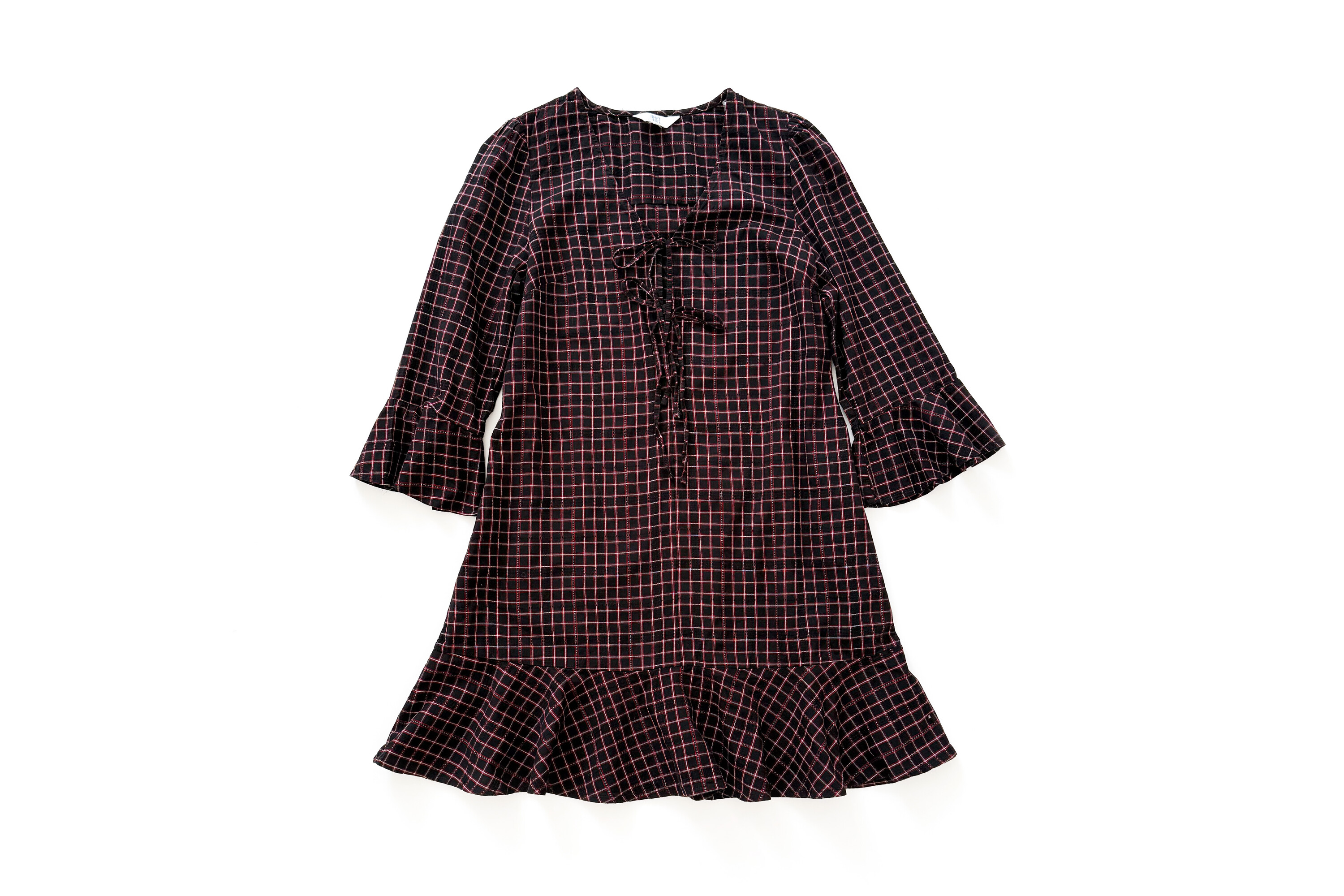 True to size. Flirty and flounce-y, this mini dress is a perfect addition for your everyday wardrobe. Crafted in a lightweight cotton-viscose dobby weave for an equally comfy and stylish look. Features a bold plaid pattern that epitomizes classic fall vibes