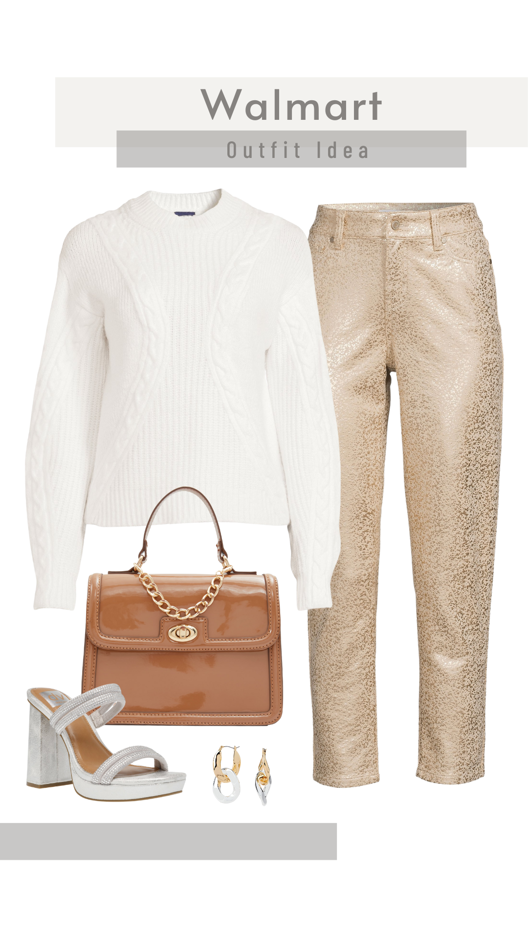 Walmart NYE Outfit Idea - Scoop Sweater and Time and Tru Metallic Pants