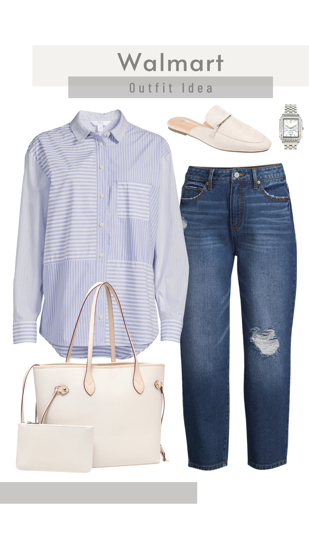Walmart Outfit Idea - Time and Tru Oversized Button Up and Barrel Jeans